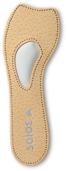 Solos LEATHER PLUS ortopédiai talpbetét nyitott orrú cipőkhöz, szandálokhoz. Támogatja és rögzíti a boltozatot. Az ortopédiai talpbetét enyhíti a boltozat csökkenésével járó tüneteket. A tünetek a következők: fokozott fáradtság és a láb zsibbadása, kellemetlen fájdalmas érzés a lábfejben, duzzadás, égető érzés stb. Megelőzheti a bütyök rosszabbodását. Az ortopédiai talpbetét csökkenti a rossz lábtartás okozta fájdalmat. Megelőzheti az egész mozgásszervi rendszerben jelentkező fájdalmakat, beleértve a migrént is.